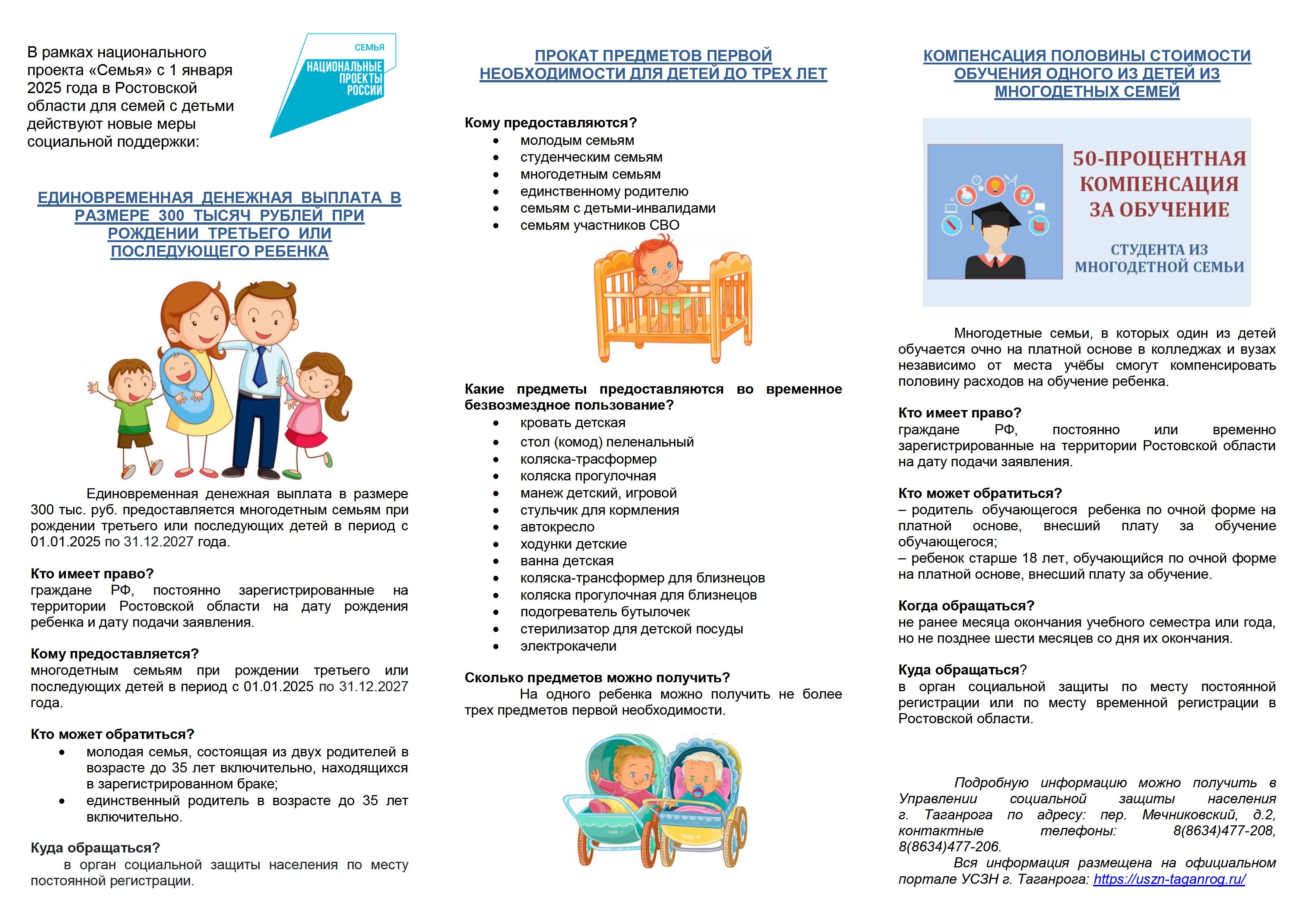 В рамках национального проекта «Семья» с 1 января 2025 года в Ростовской области для семей с детьми действуют новые меры социальной поддержки