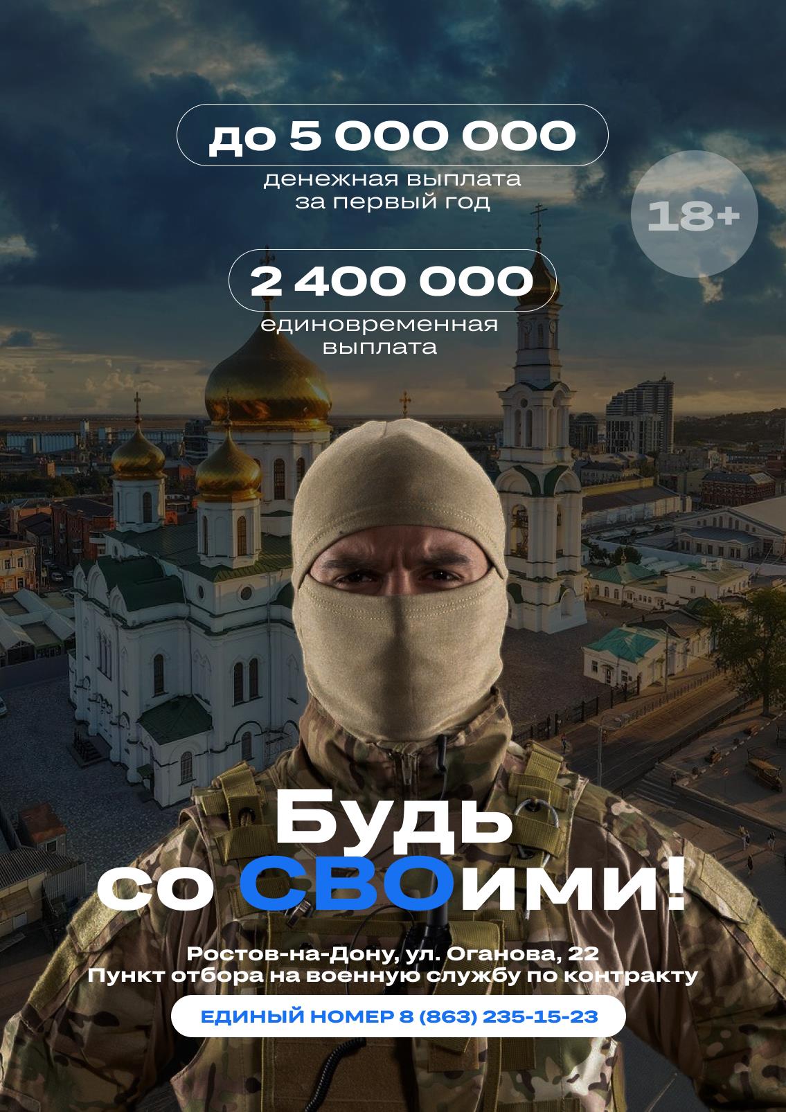 На Дону достойные денежные выплаты, которые увеличились, и социальные гарантии для военнослужащих:— 2,4 млн. рублей единовременно